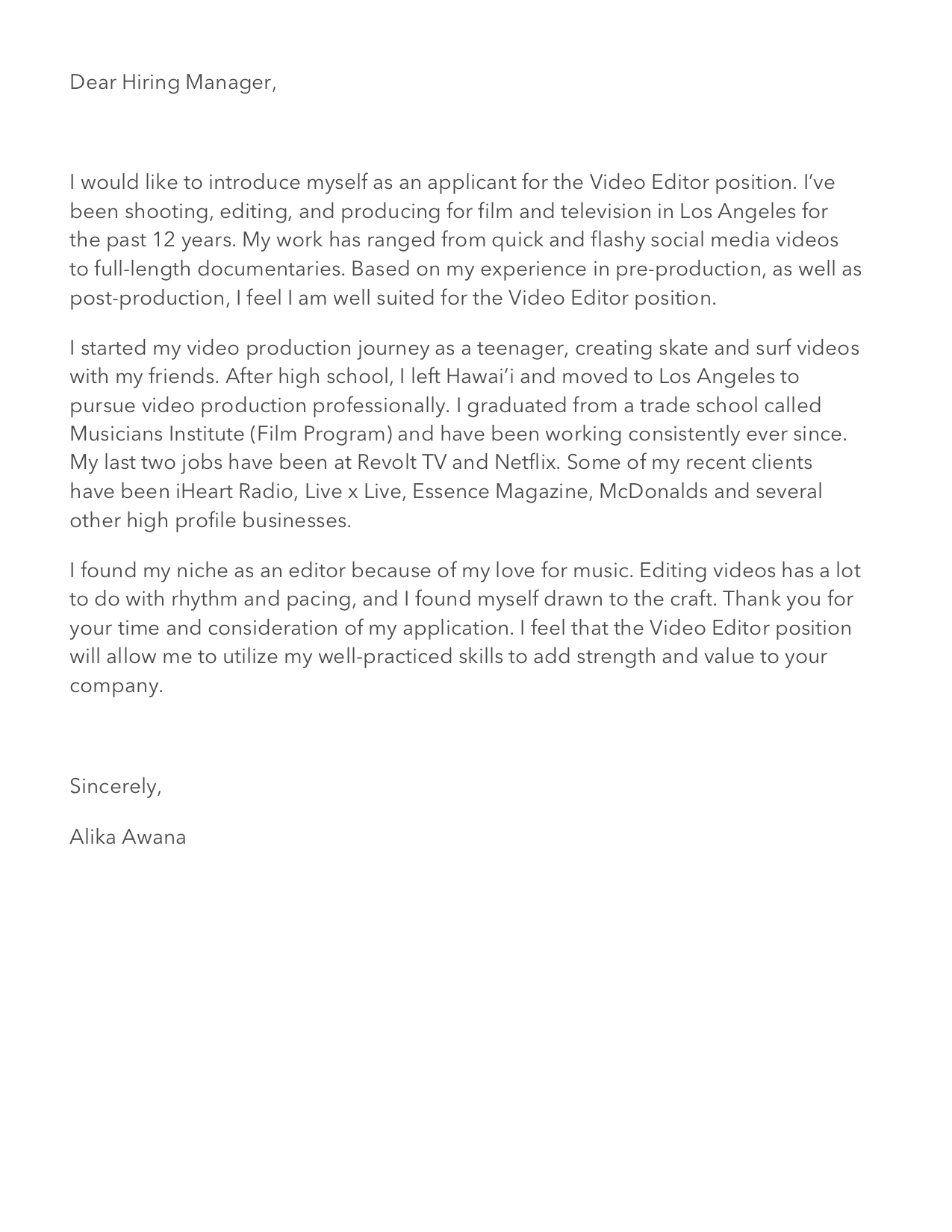 Cover Letter
